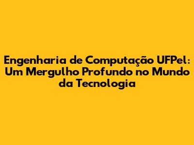 Engenharia De Computação UFPel: Guia Completo E Detalhado
