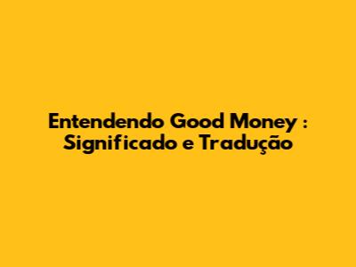 Entendendo Good Money: Significado E Tradução