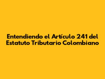 Entendiendo El Artículo 241 Del Estatuto Tributario Colombiano