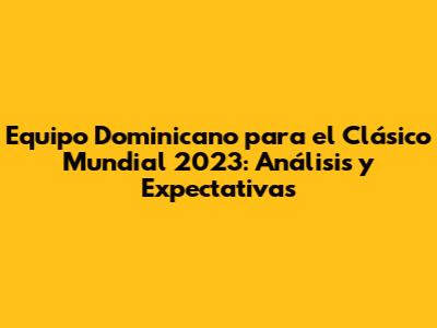 Equipo Dominicano Para El Clásico Mundial 2023: Análisis Y Expectativas