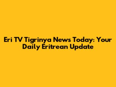 Eri TV Tigrinya News Today: Your Daily Eritrean Update