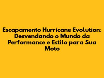 Escapamento Hurricane Evolution – se você é um motociclista apaixonado por velocidade, estilo e aquele ronco inconfundível, com certeza já ouviu falar dele. Mas, o que exatamente faz desse escapamento ser tão especial? Neste guia completo, vamos mergulhar fundo no universo do Escapamento Hurricane Evolution, explorando suas características, benefícios, como escolher o modelo ideal para sua moto e muito mais. Prepare-se para uma jornada que vai transformar a sua experiência sobre duas rodas, elevando a performance e o visual da sua máquina a um novo patamar.