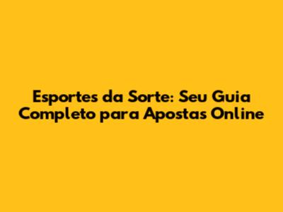 Esportes Da Sorte: Seu Guia Completo Para Apostas Online