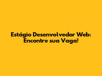 Estágio Desenvolvedor Web: Encontre Sua Vaga!