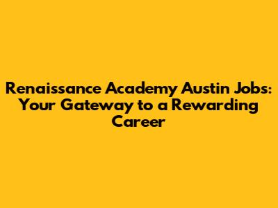 Hey everyone! Are you on the hunt for a job that's not just a job, but a chance to make a real difference? Well, let me tell you about Renaissance Academy Austin jobs – they might just be what you're looking for! This article is all about diving deep into the opportunities available at Renaissance Academy Austin, giving you the lowdown on what they're all about, the types of roles they offer, and why you might want to consider joining their team. Whether you're a seasoned educator, a fresh grad, or someone looking to change careers, stick around because we're about to explore the exciting world of Renaissance Academy Austin jobs together. Let’s get started, shall we?