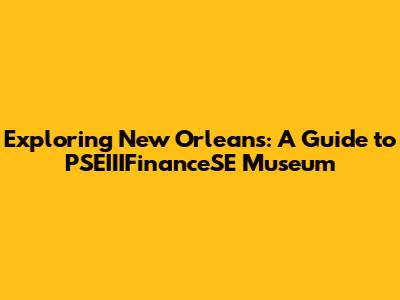 Exploring New Orleans: A Guide To PSEIIIFinanceSE Museum
