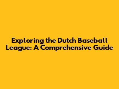 Exploring The Dutch Baseball League: A Comprehensive Guide