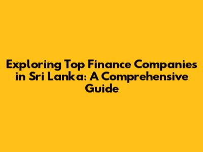 Exploring Top Finance Companies In Sri Lanka: A Comprehensive Guide