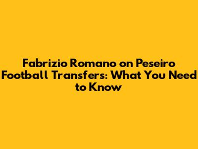 Alright guys, let's dive into the exciting world of football transfers, and today we're focusing on whispers and concrete news surrounding Peseiro Football and the insights from none other than the transfer guru himself, Fabrizio Romano. If you're a fan of the beautiful game and love staying ahead of the curve on who's moving where, you're in the right place. We're going to unpack what Fabrizio Romano has been saying, what it means for Peseiro Football, and what we can expect in the upcoming transfer windows. It's a wild ride, and having reliable information is key, so strap in!