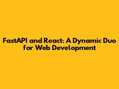 FastAPI And React: A Dynamic Duo For Web Development