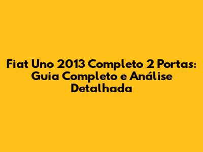 Fiat Uno 2013 Completo 2 Portas: Guia Completo E Análise Detalhada