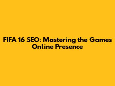 FIFA 16 SEO: Mastering The Game's Online Presence