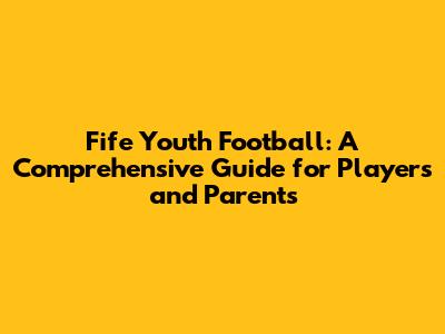 Fife Youth Football: A Comprehensive Guide For Players And Parents