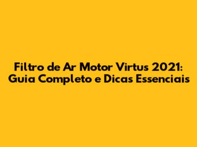 Filtro De Ar Motor Virtus 2021: Guia Completo E Dicas Essenciais