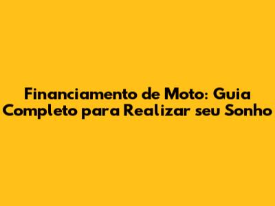 Financiamento De Moto: Guia Completo Para Realizar Seu Sonho