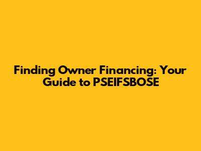 How to Find Owner Financing Near You - The PSEIFSBOSE Angle