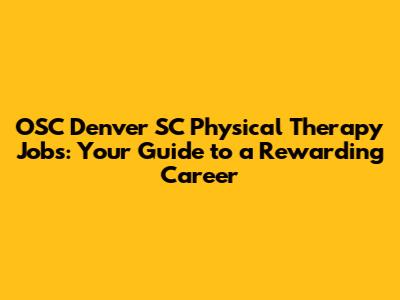 Hey there, future physical therapists! Are you on the hunt for OSC Denver SC physical therapy jobs? Awesome! You've landed in the right spot. Finding the perfect job can be a bit of a maze, but don't worry, we're here to shine a light and guide you through the process. OSC Denver SC (Orthopedic & Spine Center of Denver) is a well-respected name in the world of physical therapy, and landing a job there could be the career boost you've been dreaming of. This article will be your go-to resource for everything you need to know about OSC Denver SC, the physical therapy jobs they offer, and how to snag one of those coveted positions. We'll dive into the qualifications, the application process, and what it's like to work with this amazing team. Get ready to have all your questions answered and start your journey towards a fulfilling career in physical therapy!