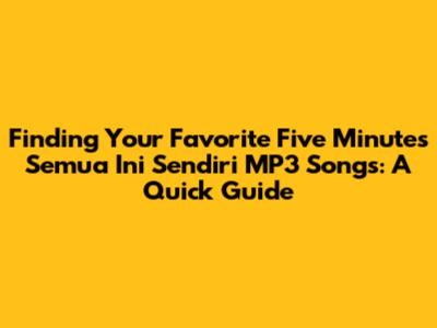 Hey music lovers! Ever get that feeling when a song just hits you? You know, the one that perfectly captures your mood or takes you back to a specific memory? Well, if you're vibing with "Five Minutes Semua Ini Sendiri," you're in good company. This song, with its catchy melodies and relatable lyrics, has resonated with a lot of people. But finding that perfect MP3 can sometimes feel like a treasure hunt, right? Don't worry, I'm here to help you navigate the world of digital music and find your favorite tunes. Let's dive into how you can easily download and enjoy "Five Minutes Semua Ini Sendiri" MP3s, plus some extra tips for music enthusiasts like yourselves.