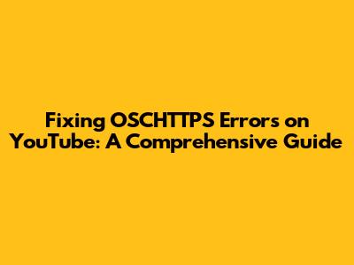 Fixing OSCHTTPS Errors On YouTube: A Comprehensive Guide