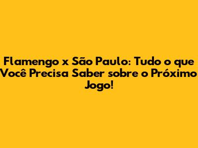 Quando Será o Próximo Jogo entre Flamengo e São Paulo?