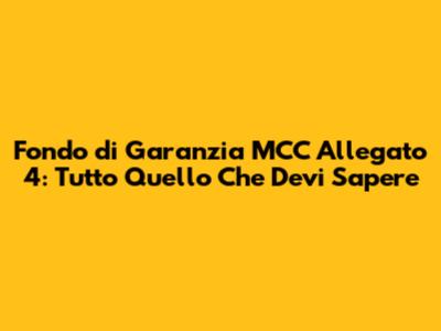 Fondo Di Garanzia MCC Allegato 4: Guida Completa
