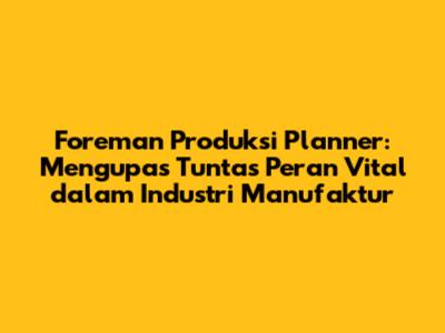 Foreman Produksi Planner adalah sosok kunci dalam industri manufaktur, memegang peranan krusial dalam memastikan kelancaran proses produksi. Mereka bertanggung jawab atas perencanaan, penjadwalan, dan pengawasan kegiatan produksi di suatu pabrik atau fasilitas manufaktur. Tugas mereka sangat beragam, mulai dari mengelola sumber daya hingga memastikan efisiensi dan kualitas produk. Dalam artikel ini, kita akan membahas secara mendalam tentang apa itu foreman produksi planner, tugas-tugas mereka, keterampilan yang dibutuhkan, serta bagaimana mereka berkontribusi pada kesuksesan perusahaan.