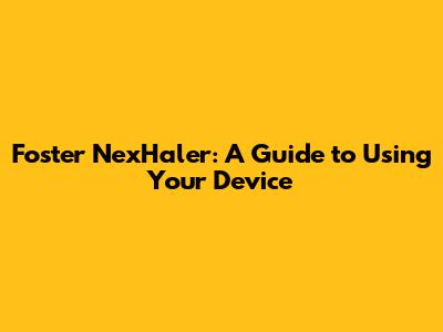 Foster NexHaler: A Guide To Using Your Device