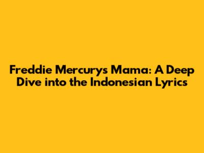 Freddie Mercury's 'Mama': A Deep Dive Into The Indonesian Lyrics