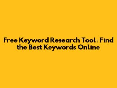 Free Keyword Research Tool: Find The Best Keywords Online