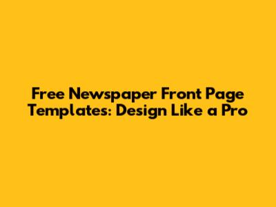 Free Newspaper Front Page Templates: Design Like A Pro
