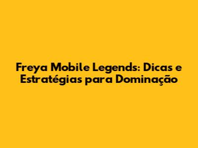 Freya Mobile Legends: Dicas E Estratégias Para Dominação