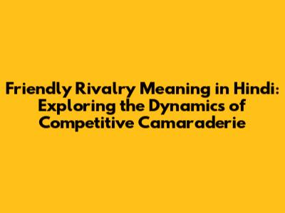 Friendly Rivalry: Meaning & Significance In Hindi