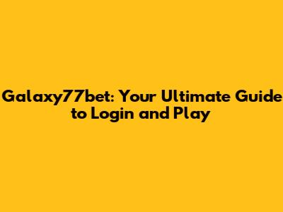 Galaxy77bet: Your Ultimate Guide To Login And Play