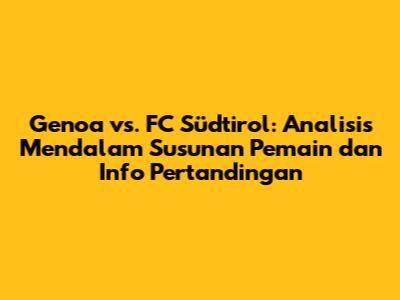 Keyword: susunan pemain, Genoa, FC Südtirol, prediksi, berita tim, Serie B, jadwal pertandingan, sepak bola, analisis pertandingan, berita sepak bola, prediksi skor, pemain kunci, strategi, formasi, kiper, bek, gelandang, penyerang, jadwal, siaran langsung.