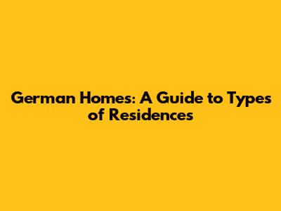 German Homes: A Guide To Types Of Residences