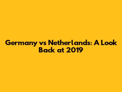 Germany Vs Netherlands: A Look Back At 2019