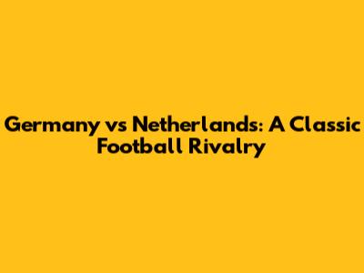 Germany Vs Netherlands: Epic Soccer Showdowns Explained