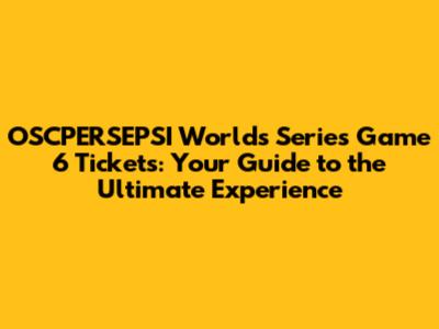 Understanding Ticket Options and Pricing for the OSCPERSEPSI Worlds Series Game 6