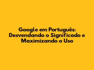 Google Em Português: O Que Significa E Como Usar