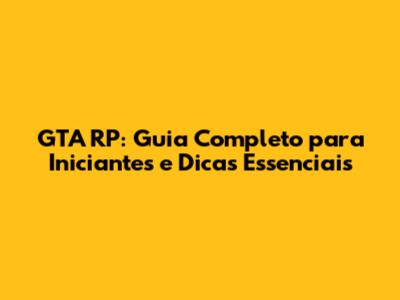 GTA RP: Guia Completo Para Iniciantes E Dicas Essenciais