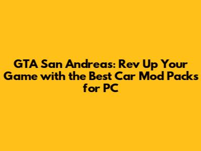 Hey guys! Ready to inject some serious horsepower into your GTA San Andreas experience on PC? You've come to the right place. Let's dive into the world of car mod packs that will transform your San Andreas into a gearhead's paradise. We’re talking about everything from sleek sports cars to beefy off-roaders, and even some downright crazy vehicles you never imagined cruising the streets of Los Santos in. Get ready to overhaul your virtual garage and make every drive an unforgettable experience!