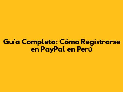 Paso a Paso: Cómo Registrarse en PayPal Perú