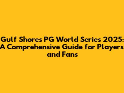 Gulf Shores PG World Series 2025: Your Ultimate Guide