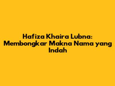 Secara keseluruhan, Hafiza Khaira Lubna adalah nama yang mengandung doa agar anak tumbuh menjadi pribadi yang salehah, berakhlak mulia, berpengetahuan luas, memiliki hati yang baik, dan selalu membawa kebaikan bagi dirinya sendiri dan orang lain. Nama ini adalah investasi jangka panjang dari orang tua untuk membentuk karakter dan masa depan sang anak.