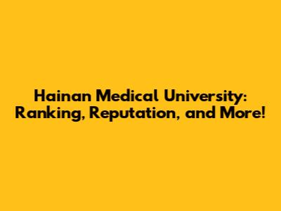 Hainan Medical University: Ranking, Reputation, And More!