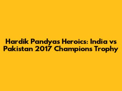 The India vs. Pakistan 2017 Champions Trophy final will always be remembered for its drama, intensity, and the heroics of Hardik Pandya. His explosive innings, despite India's eventual defeat, showcased his talent and potential. It was a match that highlighted the passion of the India-Pakistan rivalry and the unpredictable nature of cricket. The game was a thrilling display of skill, strategy, and sheer will. Pandya's performance will be remembered as a testament to his character and determination. The match, with all its ups and downs, left an indelible mark on cricketing history. It was a reminder of the power of sports to bring people together, creating unforgettable memories for fans around the world. The legacy of the 2017 Champions Trophy final continues to inspire fans and players alike.
