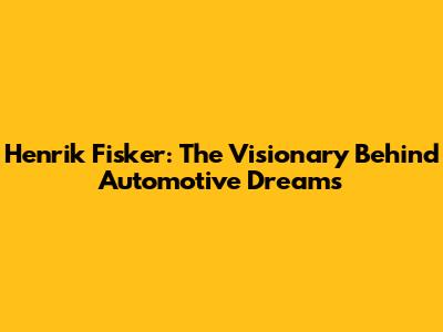 Henrik Fisker: The Man Behind Iconic Car Designs