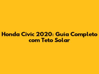 Honda Civic 2020: Guia Completo Com Teto Solar