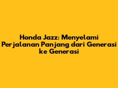 Dari generasi ke generasi, Honda Jazz telah membuktikan dirinya sebagai mobil kompak yang inovatif, praktis, dan stylish. Ia telah beradaptasi dengan kebutuhan pasar dan teknologi terbaru, tetap menjadi pilihan favorit bagi banyak orang. Perjalanan panjang Honda Jazz dari generasi ke generasi adalah bukti komitmen Honda terhadap kualitas, inovasi, dan kepuasan pelanggan. Dengan teknologi hybrid dan fitur keselamatan yang canggih, Honda Jazz terus berupaya untuk memberikan pengalaman berkendara yang lebih baik dan ramah lingkungan. Warisan Honda Jazz akan terus berlanjut, dan kita nantikan inovasi-inovasi menarik lainnya di masa depan.
