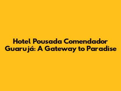Hey guys! Planning a trip to the stunning Guarujá in Brazil? You're in for a treat! This coastal paradise is known for its beautiful beaches, vibrant atmosphere, and incredible experiences. And if you're looking for a fantastic place to stay, you've got to check out Hotel Pousada Comendador Guarujá. This isn't just a hotel; it's a gateway to an unforgettable vacation. Let's dive in and see what makes this pousada so special and why it should be your top choice for your Guarujá adventure.